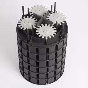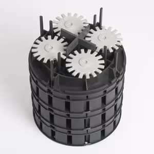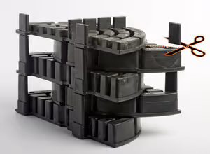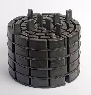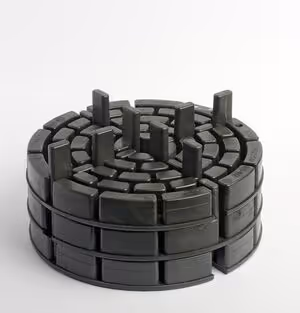 Sechs Multilager+PLUS (Art.-Nr. 193074) mit VarioLager2 (Art.-Nr. 192169) und Fugenkreuz zur Rückdrehsicherung 4mm (Art.-Nr. 192145) gestapelt