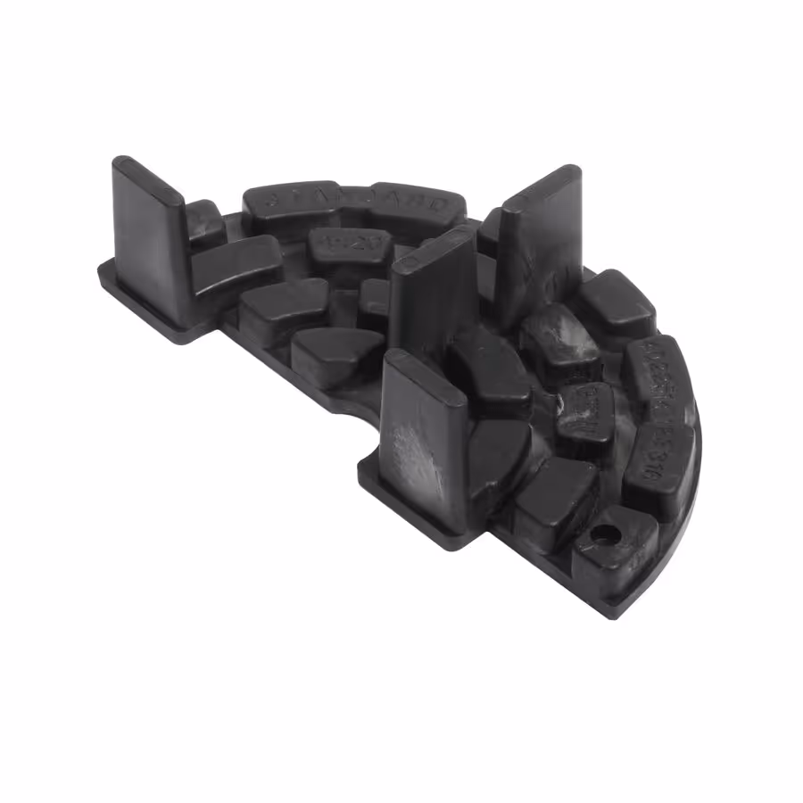 STANDARD-Plattenlager haben eine Auflagenhöhe von 10 mm und sind in den Fugenbreiten 3 mm, 4 mm und 6 mm erhältlich. Sie sind mit einem Fugensteg von 10 oder 20 mm Höhe oder ohne Fugensteg lieferbar. Das innenliegende Labyrinth des Plattenlagers sorgt für guten Wasserabfluss. Alle STANDARD-Plattenlager sind in 2 Hälften oder 4 Ecken teilbar, aber auch als Randstücke erhältlich. Zum Ausgleich kleiner Unebenheiten gibt es die STANDARD-Ausgleichsscheibe in 2,6 mm oder auch die Ausgleichsblättchen in 1 mm.