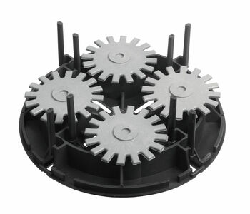 Die verstellbaren Zahnräder erlauben eine stufenlose Höhenregulierung. Sogar nachträglich, wenn die Platten schon verlegt sind.